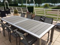 Création de table en ossature inox, plateau en remplissage composite de la teinte souhaité.